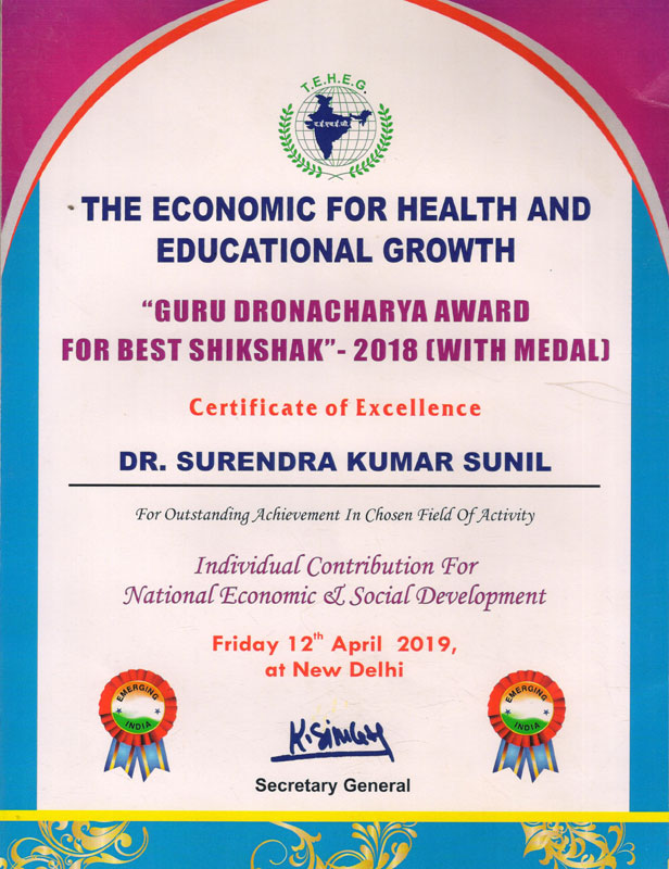 It is affiliated to the Central Board of Secondary Education , Delhi upto 12th standard (Affiliation No- 330255 , School No- 65258). The school since its origin has been carving a reputation for itself as it promotes Knowledge, Education, and Sacraments under the guidance of its chairman Dr. Surendra Kumar Sunil. Who himself is a renowned Educationalist.